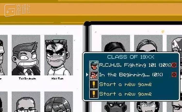 进入游戏的故事模式,画面会切换到一本打开的校友花名册,建立存档后,镜头会直接锁定到我们熟悉的角色——国夫君。