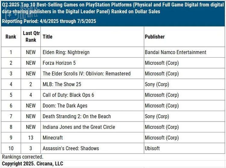 比如今年第二季度,索尼PS5的销量榜前十名中,就有六款来自微软,《极限竞速:地平线5》更是高居榜单第二。