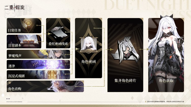 而对于玩家最为关注的角色刷取模式,在这次公测版本也由玩家的实际体验完成了验证,简单来说,玩家可完成游戏任务、副本活动积累【委托密函线索】或通过常驻玩法获得对应【角色密函】,并通过【角色密函】进入委托密函副本,获取【角色碎片】合成角色。玩家可以抛却传统角色抽卡的不确定性,去定向获取某一心仪角色,真正做到“所刷有所得”。