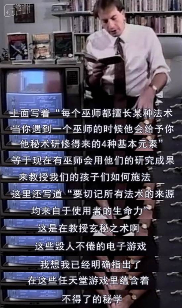 正是这种“难以理解”,让主持人产生了荒唐的想法。他在阅读了游戏说明书后,似乎觉得游戏开发商是某种邪教组织,在利用游戏向孩子们传授真正的巫术。