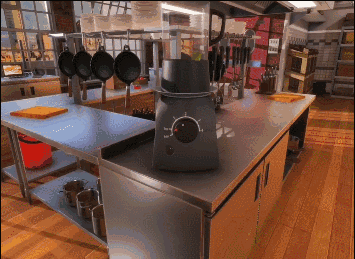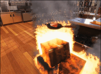 从目前的视频表现来看,《料理模拟器》的交互远不限于烹饪,厨房中的很多物品并非单纯的贴图和摆设。如果你腻烦了做菜,也可以玩点另(Zuo)类(Si)的,比如把纸箱在煤气上点燃引发火灾,这时自动消防喷淋系统会启动;比如拿起凳子砸向窗户的玻璃;把菜刀当飞镖往墙上扔;甚至把灭火器放到微波炉中,然后打开微波炉的开关……