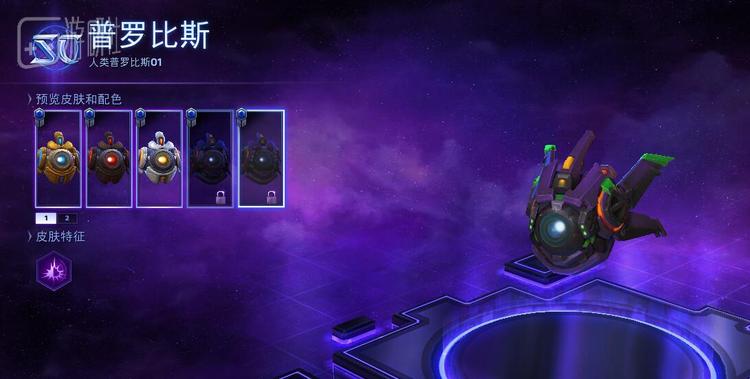 同样是来自《星际争霸》的英雄,星灵探机“普罗比斯”也有同样的设计,紫绿黄三色占了外壳大部。只是因为探机本体很小,特征没有前面那些明显,不过真正的粉丝也是能看出来的。