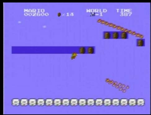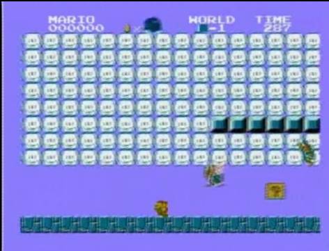 顺带一提,磁碟版的《超级马里奥兄弟》也可以进入负1关。只是与通常版不一样,完全是不同的版面。