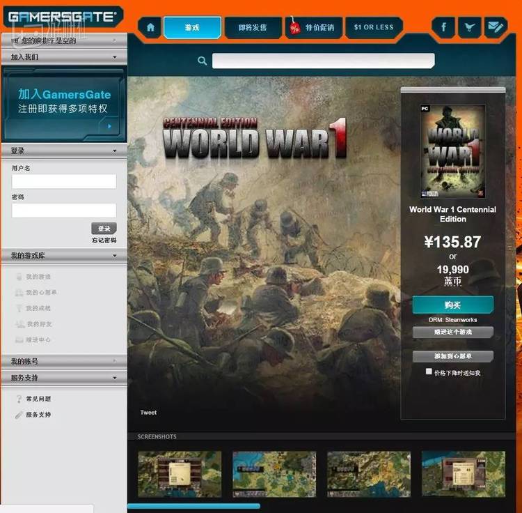 最后,还有一些逗逼小厂在Steam下架后仍然在其他平台卖自己的游戏。比如一款叫做《World War 1 Centennial Editon》的下架游戏至今仍在GamerGate上销售。2014年此游戏因为母公司财务审查遭到下架,至今没有回到Steam。但它在GamerGate依旧在售,2015年的一战纪念日,制作公司还为它做过宣传。