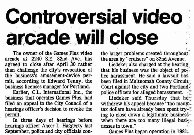 在波特兰所属的俄勒冈州,这段期间发生过2起玩家因玩街机身体不适的事件,两起事件都发生在1981年11月27日这天,恰巧也同在一家街机厅。
