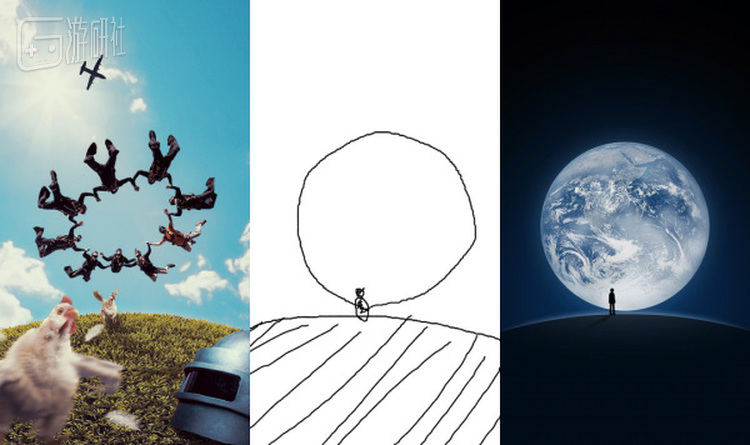 片尾花絮:下图最左是一张制作失败的《绝地求生》版微信启动画面。尽管一眼完全看不出两者的联系,但作者坚称“这完全忠于微信的原始构图”。