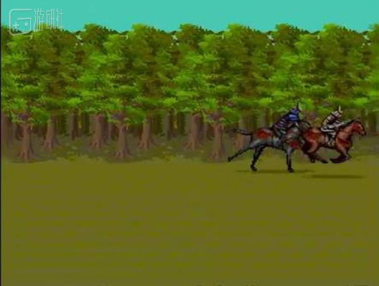 受限于当时的图形技术,很多特殊战斗均以小游戏的方式表现。比如当敌人撤退,就会进入下面这个小游戏。玩家需要一路斩杀殿后的小兵,然后拿下敌将。