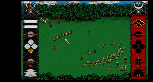 这部诞生于1989的Amiga电脑游戏,讲述的是平安时代末期(公元十二世纪末)平氏和源氏两大家族夺取天下的故事。虽然时间线要远远早于《幕府将军》,但全战系列的玩家们,很容易就能在下列画面中找到一些熟悉的感觉。