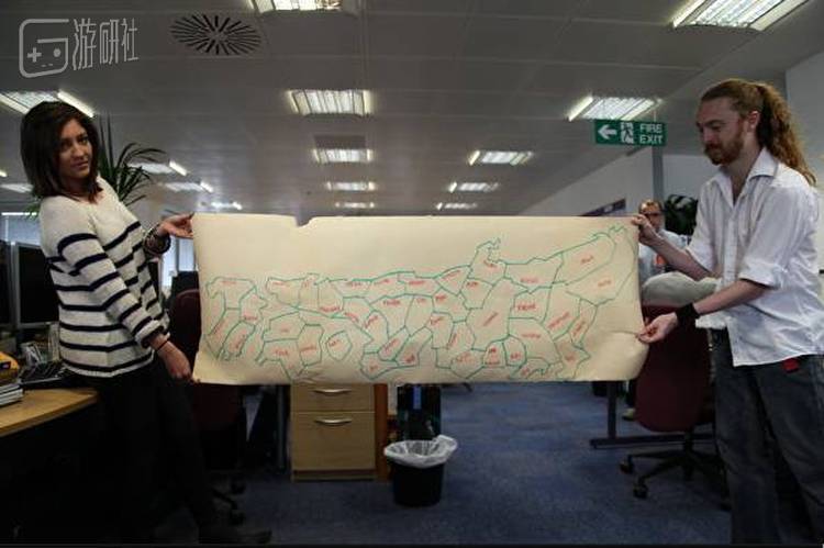 《幕府将军》在开发过程中得到了利兹大学战国史专家史蒂芬·唐博利(右)的大力支持,图为教授正在和工作人员展示手绘的日本地图