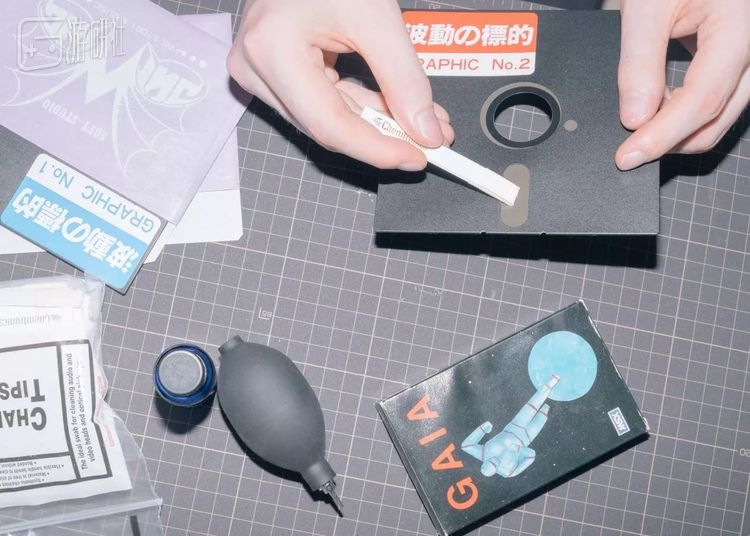 当收集到游戏软盘后,雷东会先用专门的试纸看读取区是否存在霉变或者污渍,并用工具对其作一些简单的清洁和修复工作:
