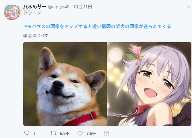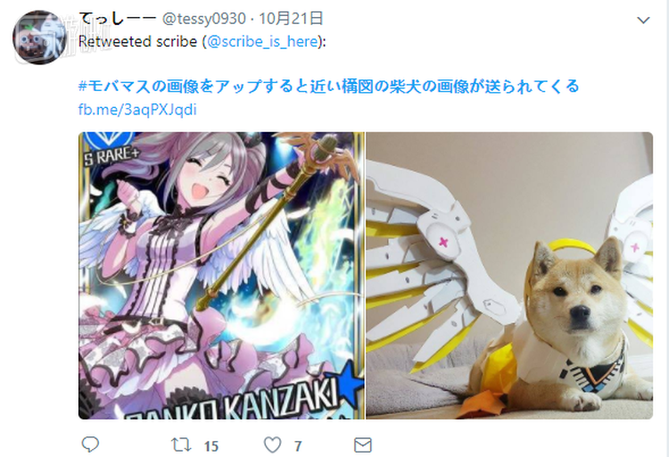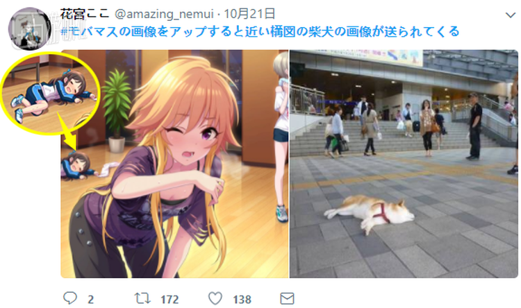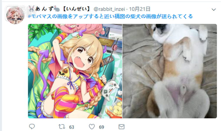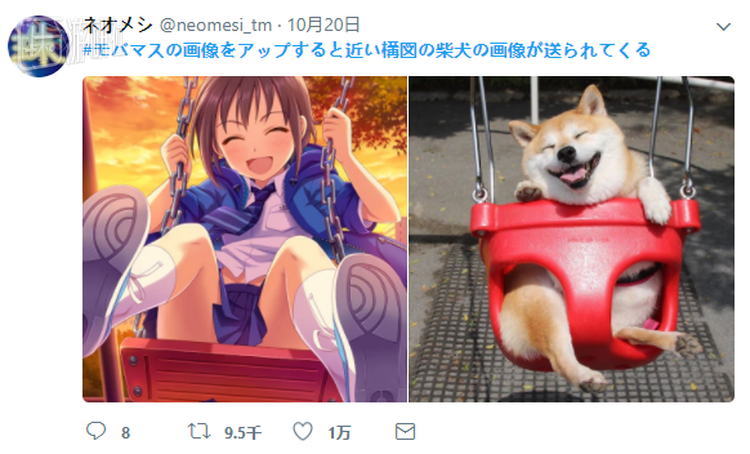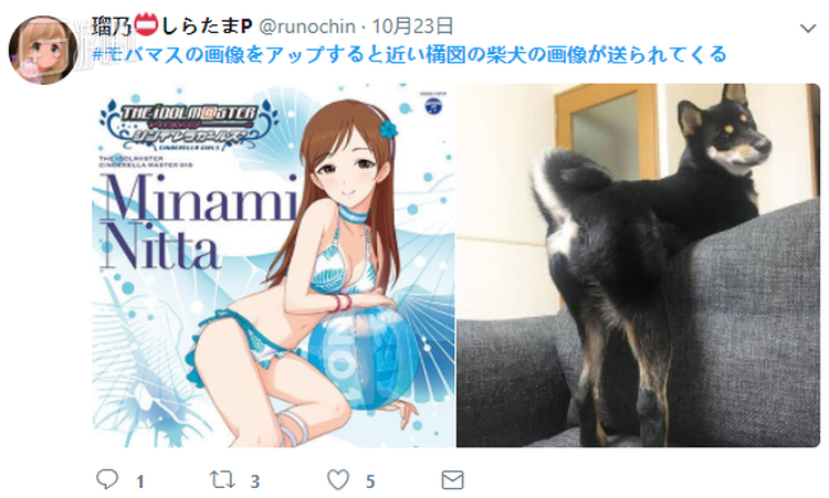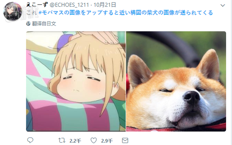最近几天,日本推特上突然开始流行一个热门话题,叫做“#モバマスの画像をアップすると近い構図の柴犬の画像が送られてくる”,大意就是寻找构图和“偶像大师”相似的柴犬照片。