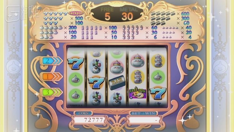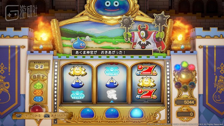 以往DQ里的老虎机都是简化版本的老虎机,玩法很单一,拉出花色就完了,顶多再加几次免费机会。而DQ11里的老虎机,完全引用了日本柏青嫂的规则和特色,演出效果华丽,玩法多样而复杂。拉老虎机不是单单拉出777就行了,而是有高低概率不同的区域。低概率区达到一定次数,可以通过Bonus进入高概率区,这时会有非常有趣而精彩的战斗画面,既热闹又刺激。等中了大奖之后,还有把玩家粘住的确变高概率区,让你期待还能再次中大奖。