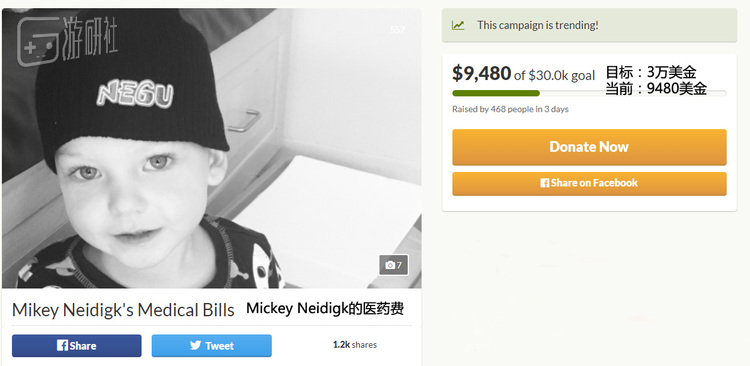 Neidigk为患白血病的儿子开设的募捐账户,用于支付3年的手术和化疗费用。超过目标的金额将全部捐献给新墨西哥州的儿童癌症基金会和麦当劳叔叔之家慈善基金