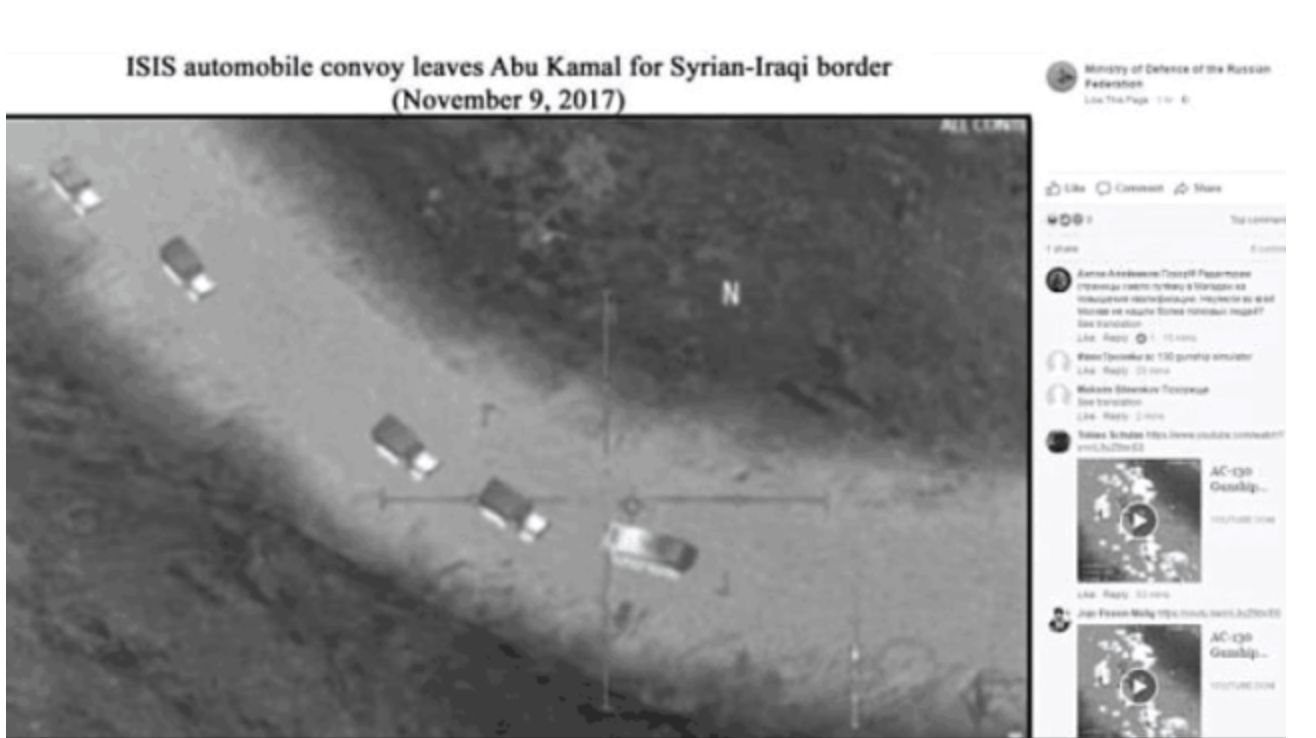 就在几天前,俄罗斯国防部网站上传了一张可以证明美国故意清空防区,放任IS武装车队逃往伊拉克西北地区的“卫星照片”。