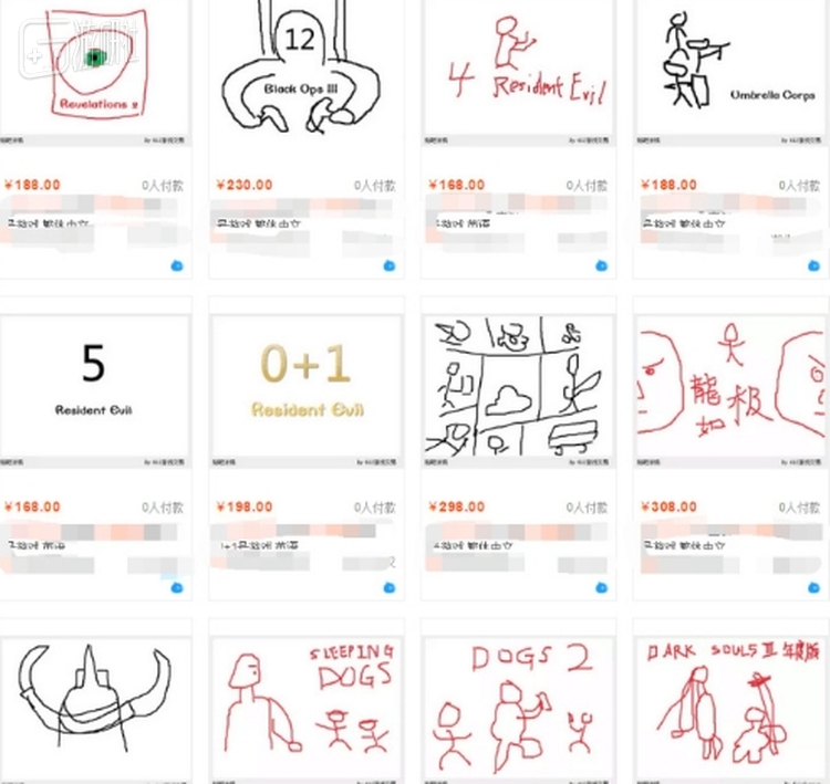 不嫌麻烦的,甚至会把自家淘宝店里所有的游戏都换成了涂鸦风,也算得上是一种特色了,可谓“灵魂画师”届的大师。不幸的是,这家店没过多久就因虚假宣传被淘宝杀鸡儆猴,遭到关店处罚。