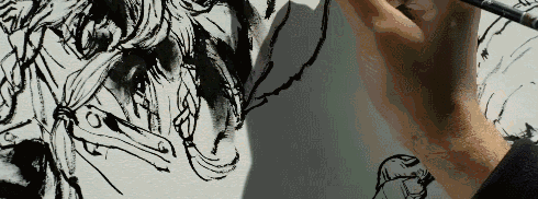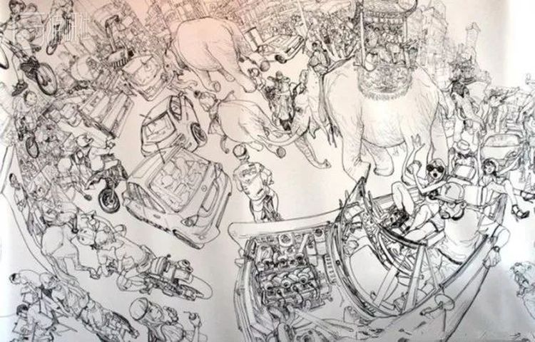 有的朋友或许已经看出来了,这幅画作虽然有原型,是但画家在创作过程中没有打底稿,没有参考任何画面,而是直接用墨水笔画在白纸上。