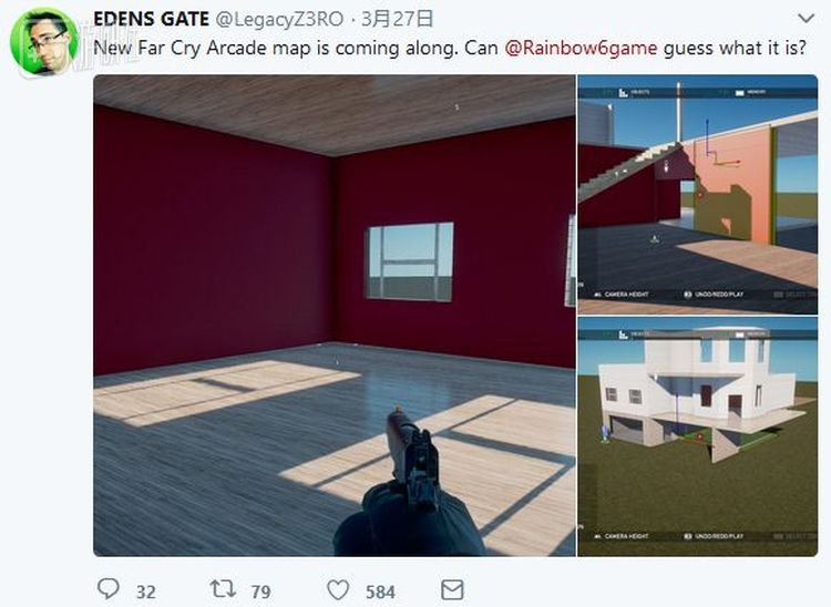 这里还一位网友在推特上晒出了自己正在制作的关卡,顺便艾特了《彩虹六号》官方账号。各位干员能认出这是哪儿么?