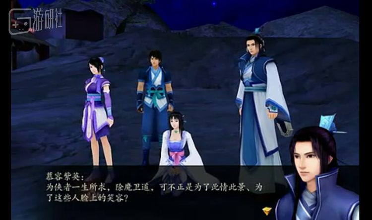 随后这种形象就不太让人满意,侠义精神吸收儒家思想,侠客的内在道德更加完善和理性。同时唐宋时期,道士修炼“外丹”基本宣告失败,他们不再追求长生。道家修炼方法逐渐转变为“内丹”修炼,“内丹”除了我们最常了解的类似于“修为结晶”的概念外,还有“精气神”等内在素养的修炼。道教制定了很多行为规范,强调道德修养。这两条因素相交,发展到现在,便有了郭靖所说“侠之大者,为国为民”。剑侠与道教关系非常密切,其侠义观念基本上与之类似。仙剑派所谓修炼不为成仙,而为济世救人。即墨花灯时,慕容紫英说:“为侠者一生所求,除魔卫道,不正是为了此情此景,为了这些人脸上的笑容。”罡斩兵解于锁妖塔,魂斩枯木。都是这种精神的极致演绎。说起慕容紫英,他几乎是整个仙剑中“剑侠”形象的集大成者,外貌、性格、仙法都是典型的剑侠形象,下文还会有更多内容。