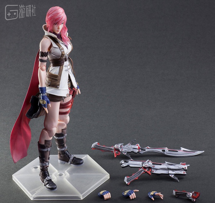 可以明显看出其中有很多转轴链接,雷霆非战斗状态是将其折叠别在腰上。比较奇特的是,在Square Enix play arts出品的手办中,怒火剑可以变成枪形态,我第一眼看到这把武器的图片也是觉得可以变成枪械形态,但游戏中好像并没有出现,难道是时间太久我忘记了?可能是设计砍掉了吧。如果说错了请指正。