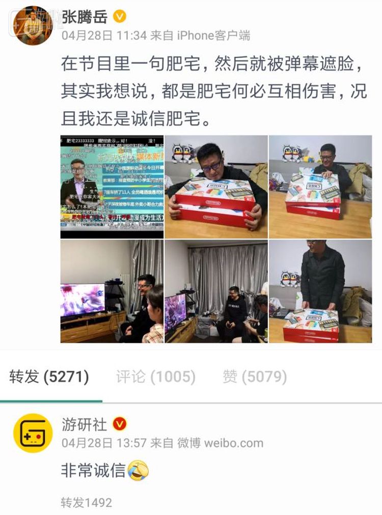 相反,抱着肥宅快乐盒的央视主持人张腾岳就会和我们对暗号。