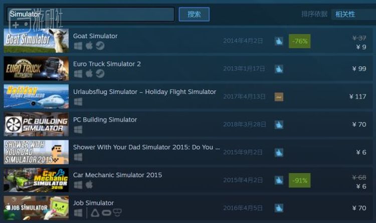 在Steam平台上,搜索“Simulator”(模拟器)能跳出168页的结果,其中大多数都是带着“Simulator”标签的模拟经营游戏,但还有不少则是更为纯粹的“模拟器”,比如大家很熟悉的《模拟山羊》和《史诗战争模拟器》。