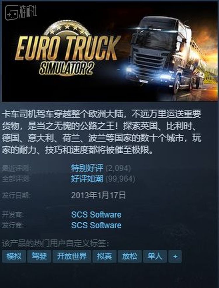 当然,除了这种胡逼的“大杂烩”之外,还有不少模拟器游戏是强调玩法和体验,甚至十分精致的“正经游戏”。这一类最知名的代表,应该要属《欧洲卡车模拟2》了。