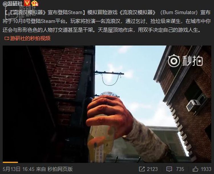 拿最近来说,有一款叫《流浪汉模拟器》的游戏还未发售,就在网上火了起来。在他们放出的宣传视频里,玩家能在地上捡烟头抽,能竖中指,用酒瓶砸人,捉弄警察,甚至还能喷出龙吼。游戏到底怎么样先放在一边,这些新奇的小点子就让人有些跃跃欲试了。