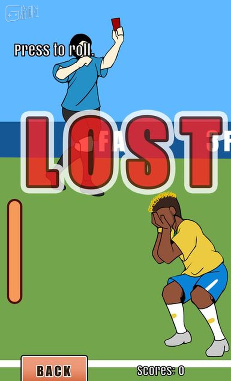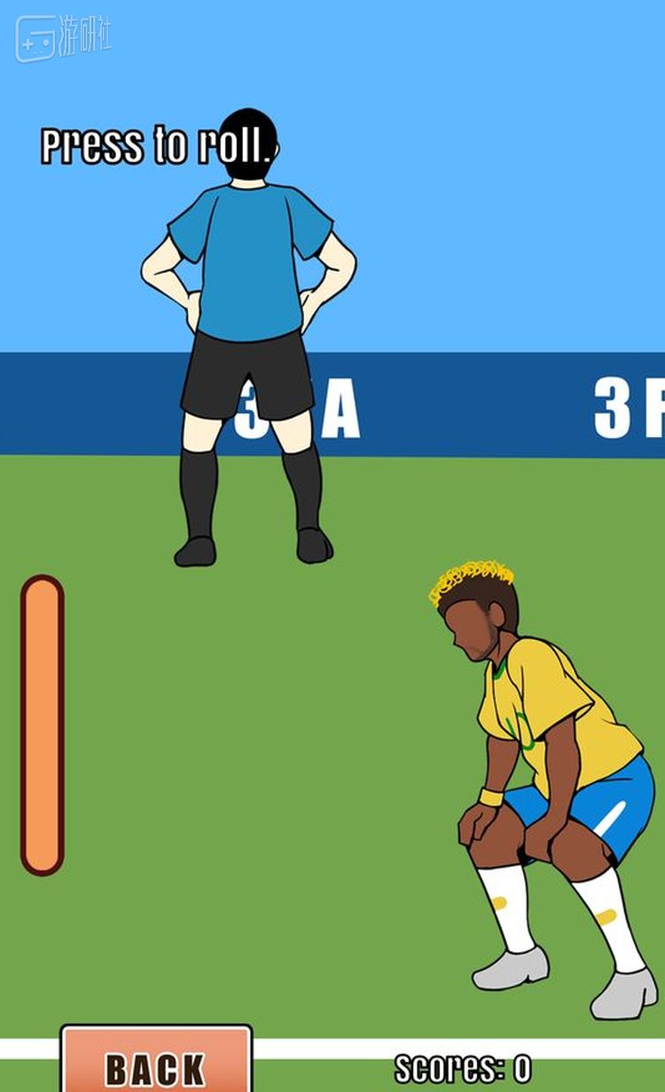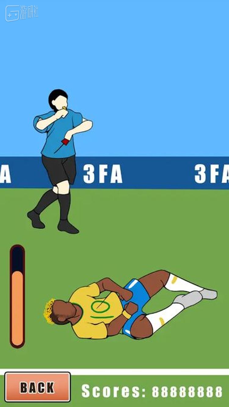整个游戏的玩法,也就是帮这个“动作演员”进行表演。每当裁判要转身时,你需要按下屏幕令内马尔在地上翻滚并一直维持翻滚状态: