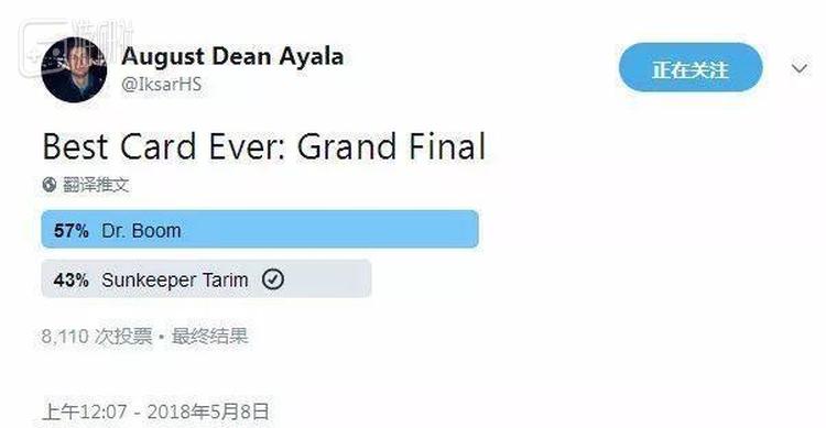今年5月份,暴雪的设计师August Dean Ayala在推特上开展了一场属于《炉石传说》的“天下第一武道会”:他从共计1594张不同的《炉石传说》卡牌内遴选出了64张广受各路玩家喜爱的卡牌,并以玩家投票的形式令这些被选召的卡牌打起了淘汰赛。