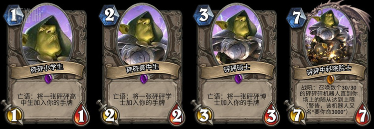 如同《魔兽世界》任务剧情内那个疯狂的地精工程师般,在《炉石传说》中砰砰博士也以具有爆炸效果的机器人闻名。这两只在砰砰博士登场时通过战吼效果而出现的机器人,往往能够为紧张的战场带来戏剧化效用,突破对方的层层防线直接打脸令你赢得比赛。