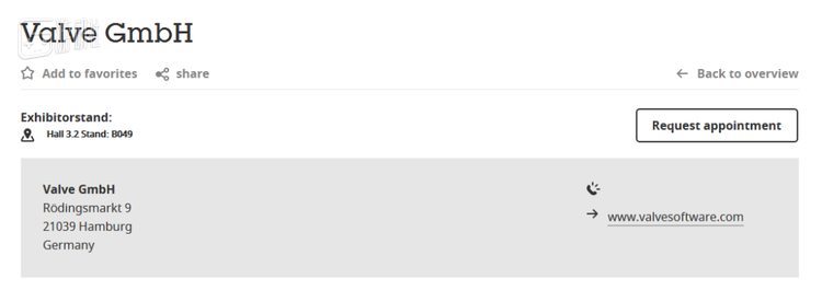 就在大家快乐地沉浸在脑补状态时,V社资讯视频播主Valve News Network却泼了一桶凉水。他表示,今年科隆展参展名单中的Valve GmbH只是V社在德国开设的商务/法务部门,其参展区域也设置在只向游戏开发者开放的展厅中。换言之,V社不大可能会在今年的科隆展上展示其游戏作品。