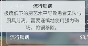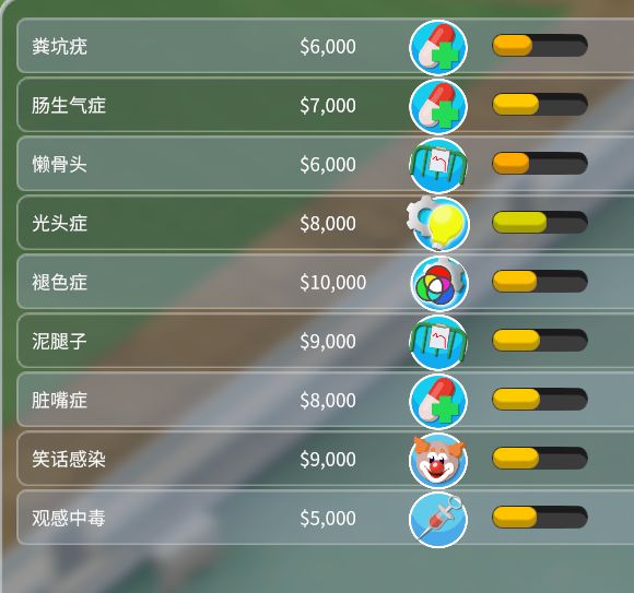 虽然《双点医院》暂时没有那种“一本正经字正腔圆”的中文“客服广播”。但是依然有英文播音腔的正儿八经的吐槽,比如“Attention,did anyone see my pen?(请注意,有人看见了我的笔吗)”。而且本地化上,依然有十足的亮点。例如,游戏中有两种疾病,一种是病患的头变成一个一直发光的灯泡,这种病叫做: