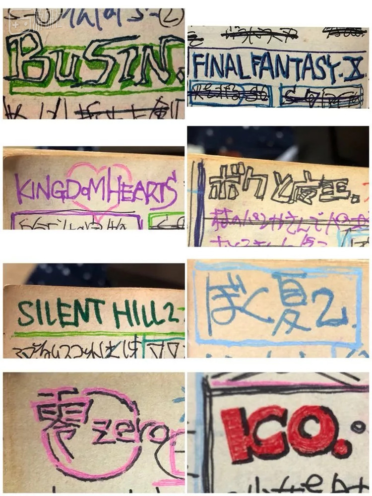 在这本手写攻略上出现的游戏,说起来也都是当时赫赫有名的 PS2 大作,例如《最终幻想10》《王国之心》《萨尔达传说 风之杖》《生化危机0》《死魂曲》《寂静岭3》《ICO》等等……从这些熟悉的名字当中,我们也能推测的出这位老父亲的年龄。