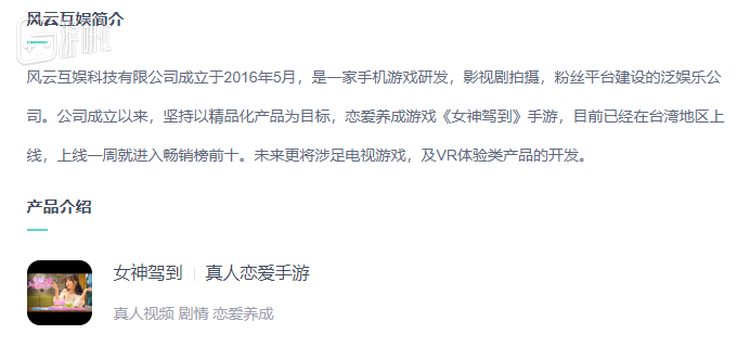 只要稍加检索《女神驾到》Steam页面上的开发商“云wind”,可以发现结果会指向一家名为重庆风云互娱科技的公司。