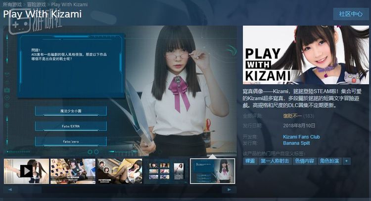 前段时间还有一个叫Play with Kizami(和铭铭一起玩游戏)的Galgame.说是Gal,互动部分也基本没有,相当于卖电子写真集。