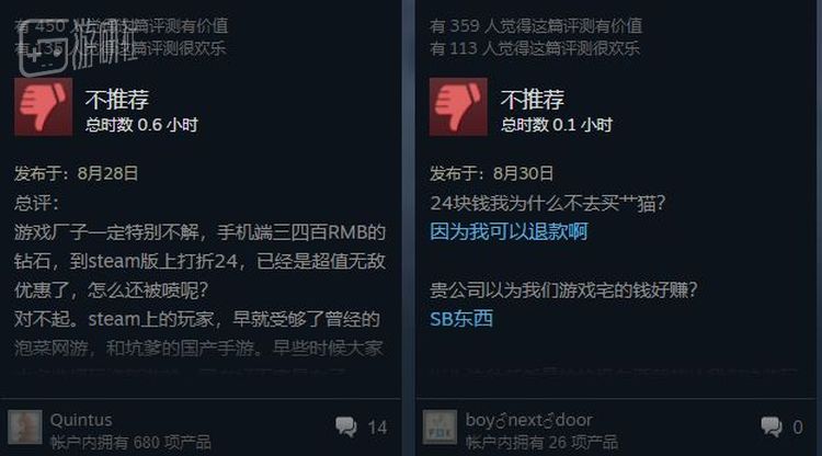 而Steam玩家为此打出了差评,就是因为他们至少明白一个道理: