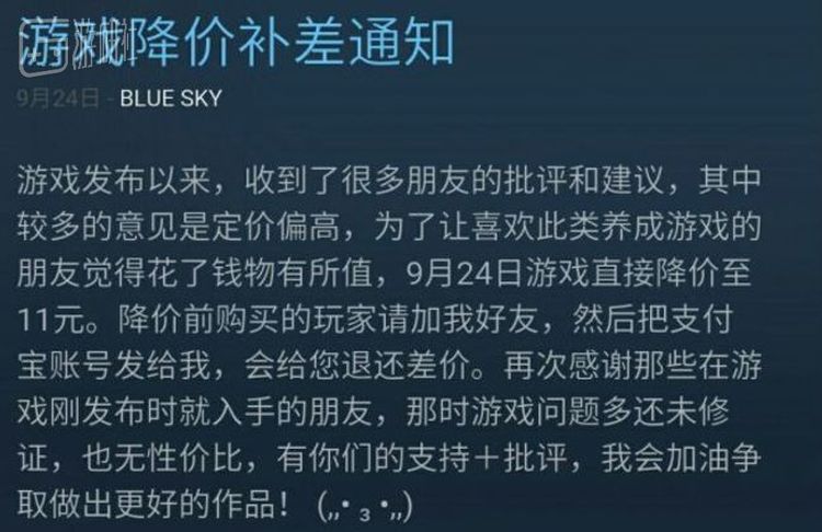 不过,SakuraGame面对如潮水般的差评,打出了一套堪称Steam运营圣经的操作:全额退款、永久降价、怒补差价。