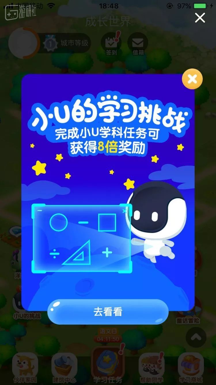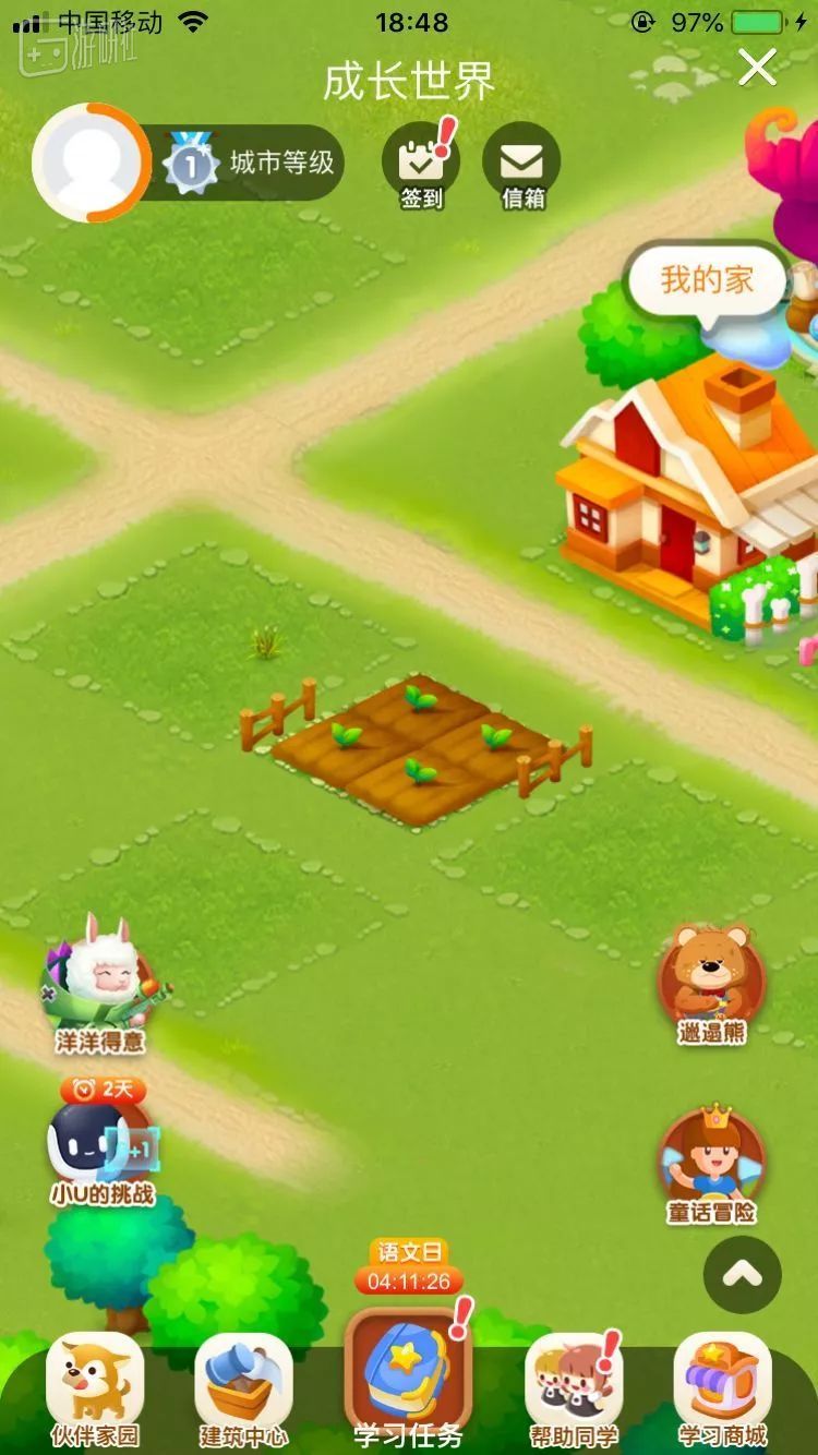而新闻中家长怒斥的游戏,其实是这个界面里左下角的“成长世界”。我体验之后发现,虽然存在各种问题,但里面的游戏机制可以说麻雀虽小五脏俱全了。