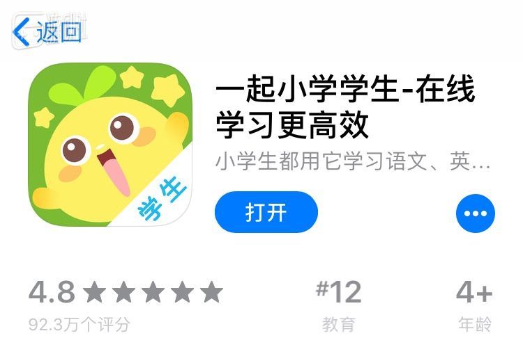 《一起小学学生》目前收获了超过92.6万个评分,平均分数为4.8。开发商上海和煦信息科技有限公司旗下有十余款教学应用软件,但评分数量差得很远,即使同样上榜的《家长通》评分数也只有《一起小学学生》的1/3。
