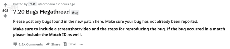 除此之外,根据玩家反馈,现在7.20版本上出现了为数不少的Bug,Reddit论坛上目前已经有数百位网友汇报了自己遇到的游戏Bug,其中较为严重的是莱恩装备A杖之后死亡一指不再有伤害、莱恩的死亡一指对天涯墨客没有伤害等,这些Bug无疑打击了一部分急于体验新内容的玩家,也让不少人怀疑V社是“用心做Bug,用脚做游戏”。