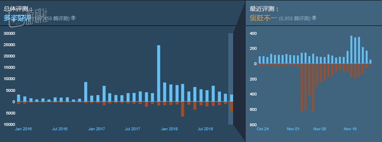 自消息公布以来,游戏在过去30天内的评测状况由此前的“多半好评”下降至“褒贬不一”,超过一半的玩家在评测中打出差评,舆论环境一度对育碧非常不利。