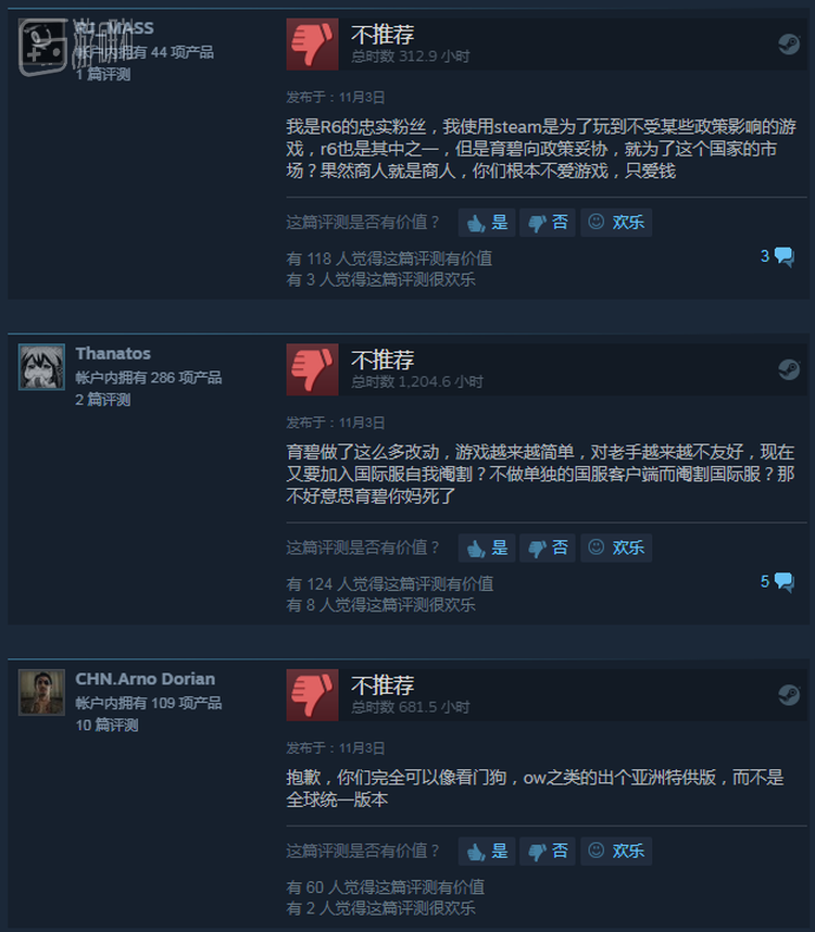 然而,育碧给出的理由并不能让玩家们认可。公告发出后,包括中国玩家在内,大批玩家以为游戏打出差评的形式表达不满。