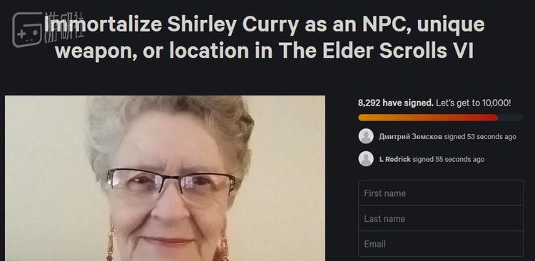 首先是Reddit的一位名为phantom-scribbler的用户发帖,呼吁大家参与请愿:申请让雪莉·库里成为《上古卷轴6》里的NPC。