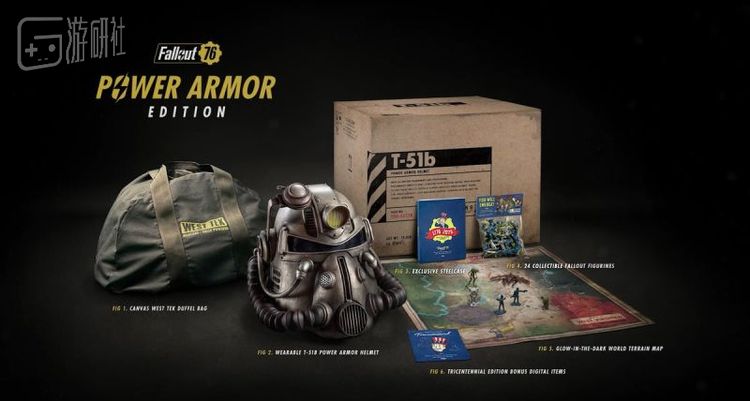 帆布袋是动力机甲版中的附赠物品,动力机甲版是《辐射76》的一个豪华版本。在宣传照片中,B社展示了这一版本中附赠的各种游戏实体周边,除了用于装纳头盔的帆布袋,还包括一个可以戴在头上的T-51b头盔,一张附带夜光效果的地图,一组角色小模型,一个纪念铁盒。