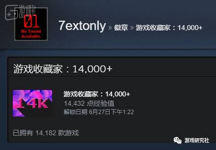 去年的6月,粉枪的游戏数达到了14000,成为世界上第一位拿下 “游戏收藏家:14000+” 徽章的玩家。这已经是他第10次以“首杀”身份拿到类似的徽章。