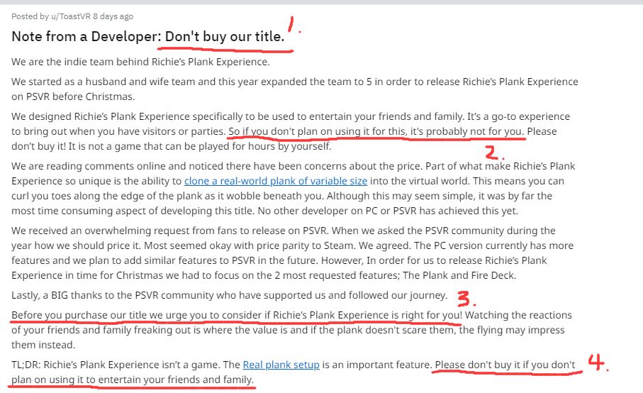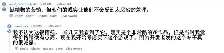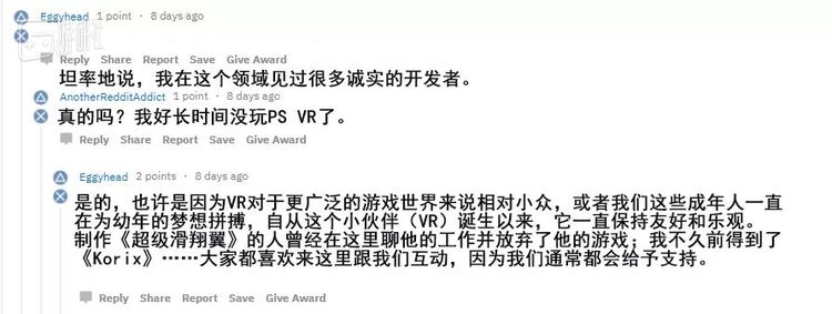 也有人由此延伸到整个VR领域,夸做VR的实诚人很多,也喜欢来Reddit和玩家聊天,因为论坛里的人从来不吝于释放自己的善意。