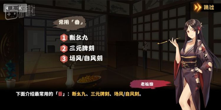 记不住种类繁多的役种(可以胡的牌型)也没关系,官方会提示掌握几个入门役种后,就能愉快地在新手场开始游戏: