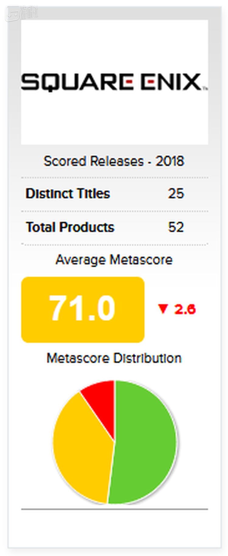 2018年,史克威尔艾尼克斯的名次提升了一名,平均媒体评分则下降了2.6分。此外,史可威尔艾尼克斯还是所有发行商中发售游戏的版本总和最高的一家,计入不同平台之后,发行的游戏数量达到了52款。