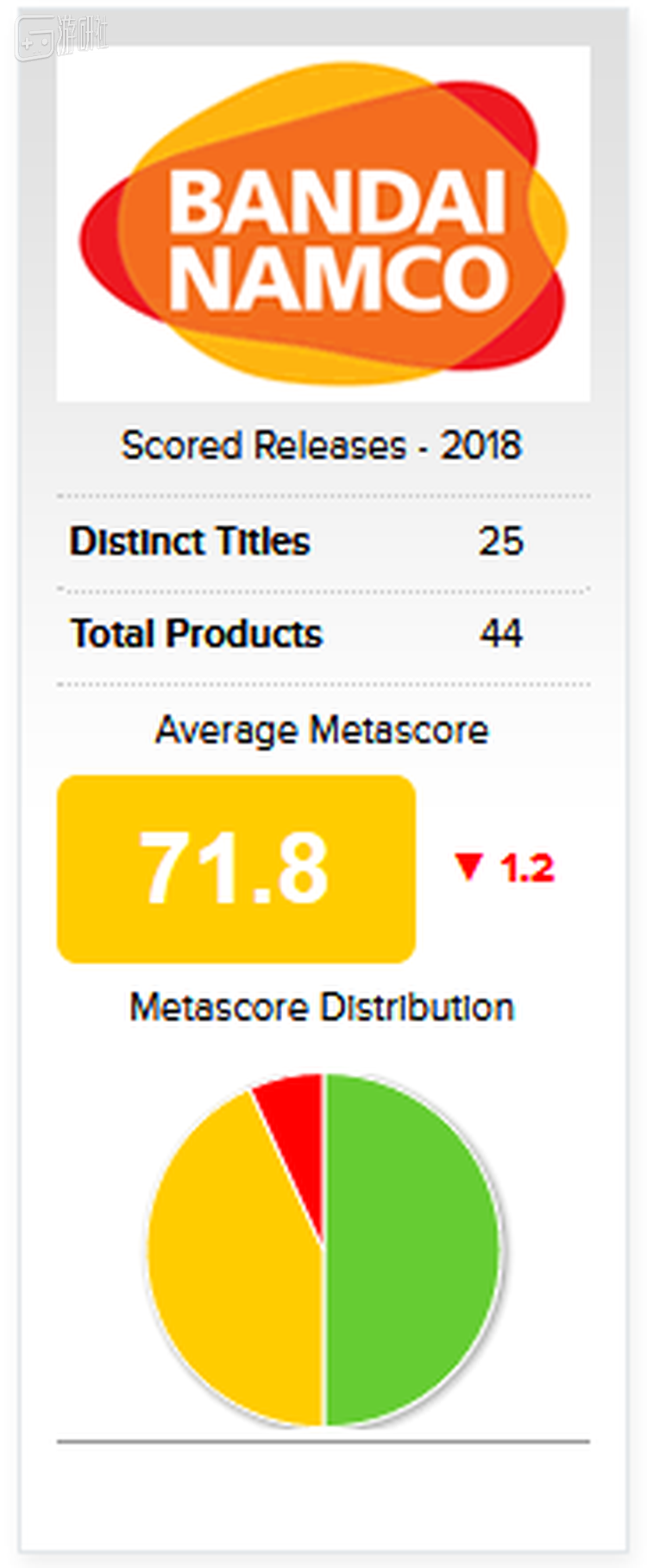 2018年,万代南梦宫的排名也前进了一位,平均媒体评分则是下降了1.2分。