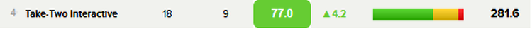 2018年,Take-Two的名次上升了五名,达到了第四名。